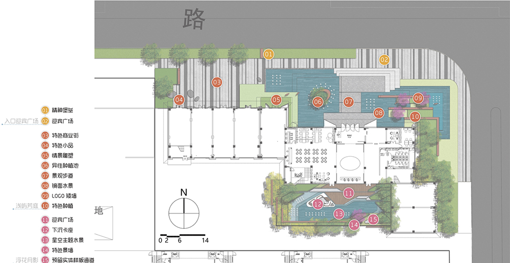1.以完全开敞式来打造,通过景观与建筑的有机融合互相渗透打造整体性更强的前场景观。