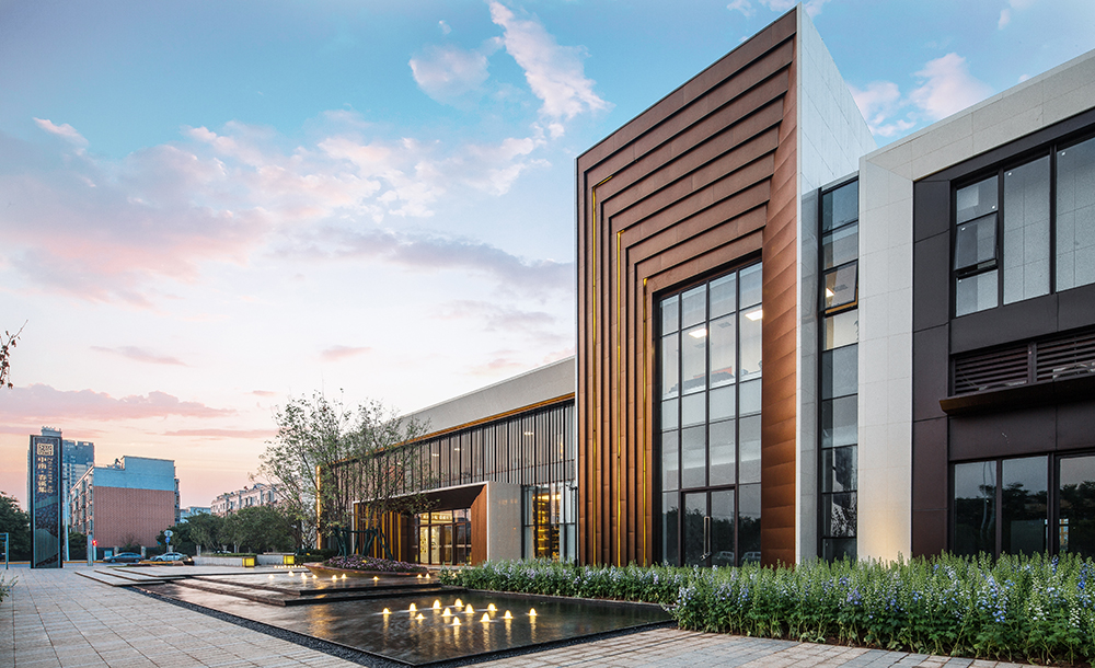 △ 水中漂浮树池,利用古铜色拉丝铝板包边,浅花萦绕,纵享拾光略影