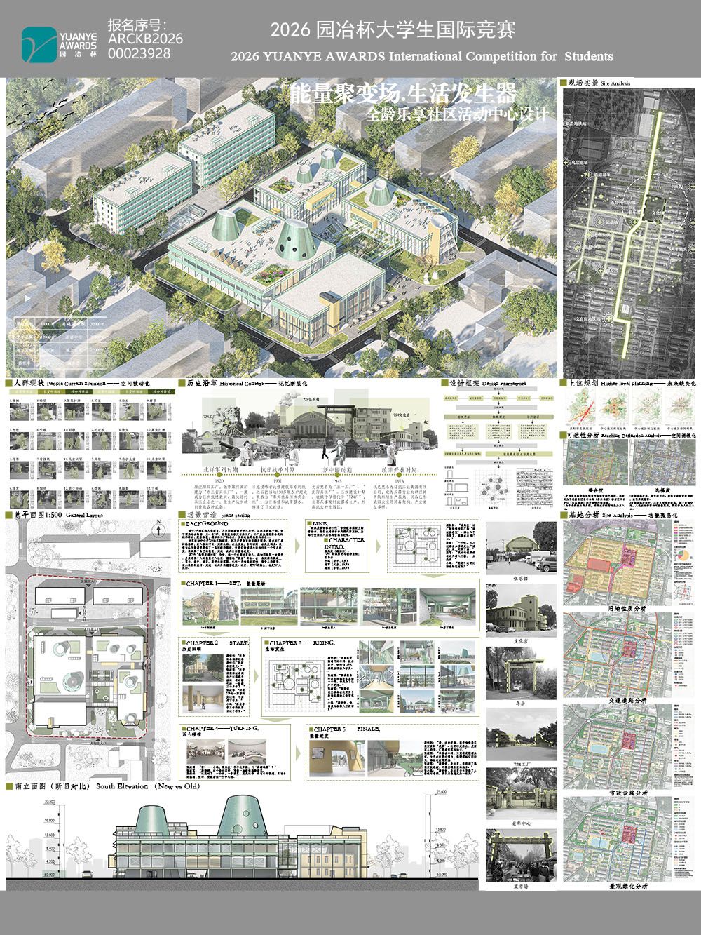 基地位于沈阳724地区文化宫历史建筑旁,承载着工厂与居民共生的集体记忆。设计以“能量聚变场·生活发生器”为核心理念,拟打造一处全龄乐享活动中心。 前期通过Depthmap和Gis对基地可达性和POI分析后,设计引入三 ...