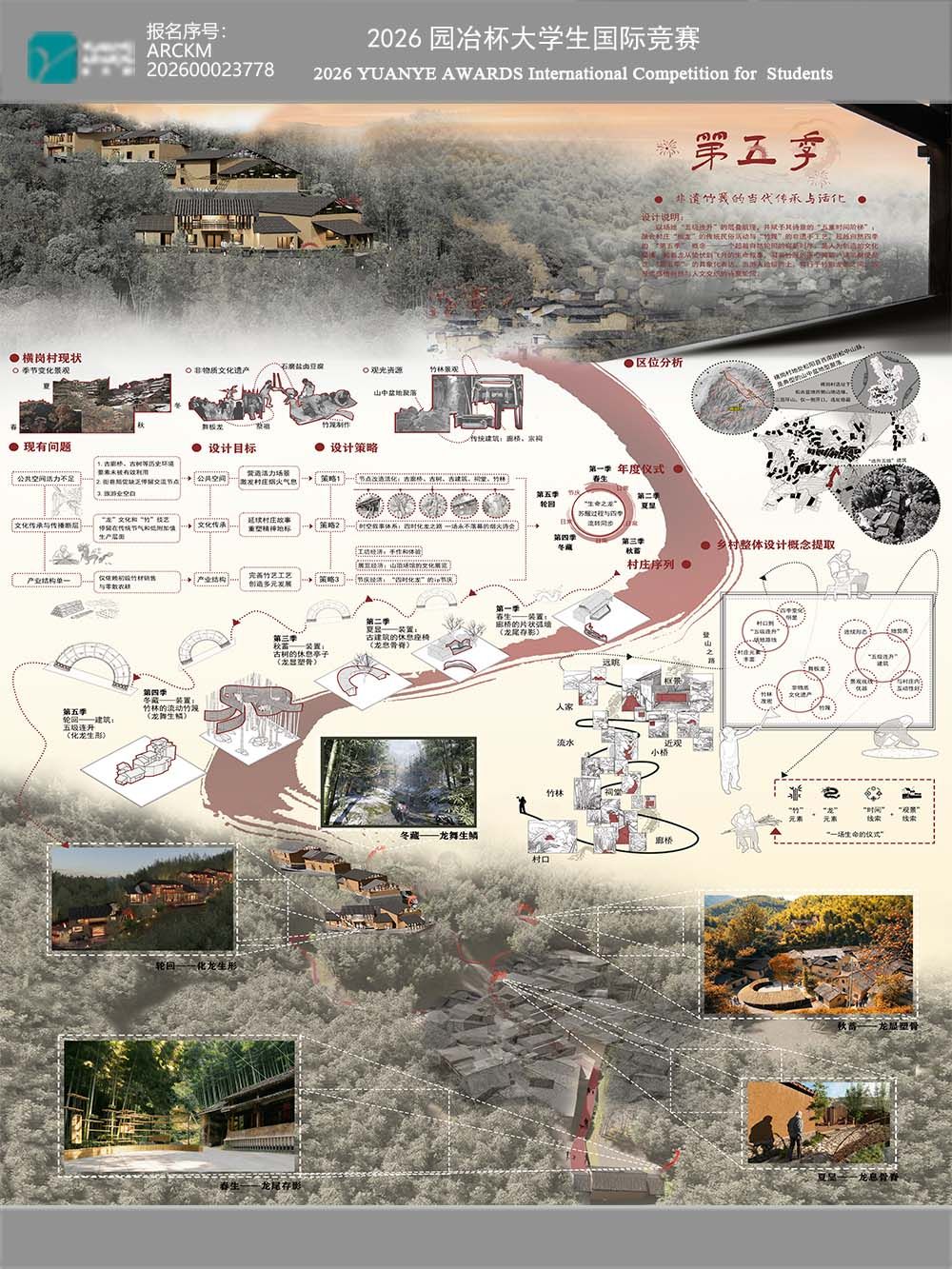 本帖最后由 王少华 于 2026-4-1 20:14 编辑 一、概念生成以场地“五级连升”的高差优势;融合村庄“板龙”的传统民俗活动与“竹篾”的非遗手工艺,超越自然四季的 “第五季” 概念——一个超越自然轮回的崭新时序 ...
