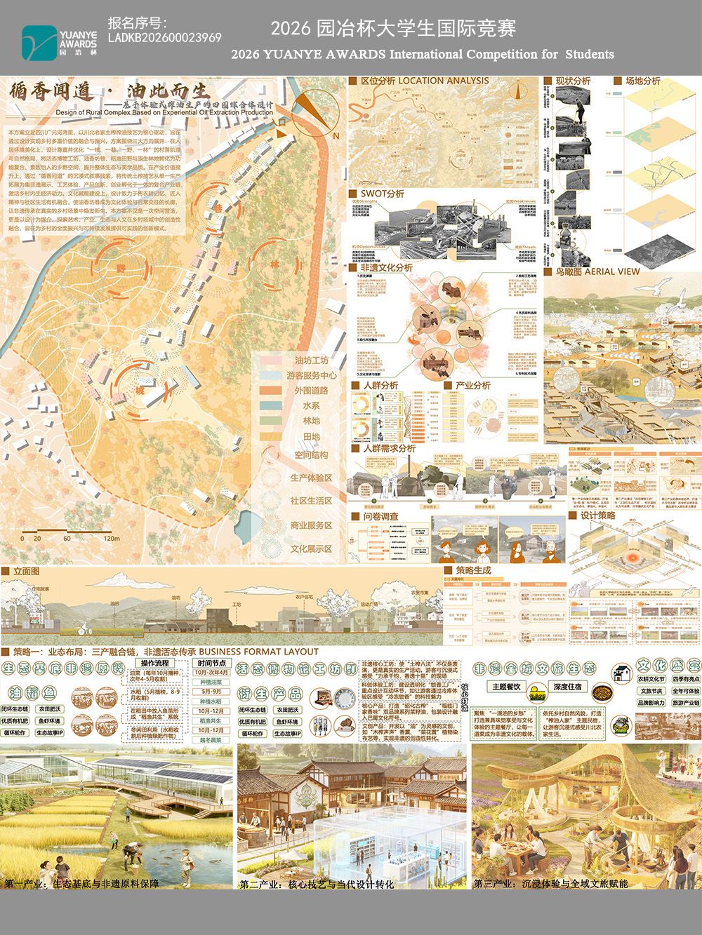 本方案立足四川广元河湾里,以川北老家土榨榨油技艺为核心驱动,旨在通过设计实现乡村多重价值的融合与振兴。方案围绕三大方向展开:在人居环境美化上,设计尊重并优化“一核、一巷、一野、一林”的村落肌理与自然格 ...