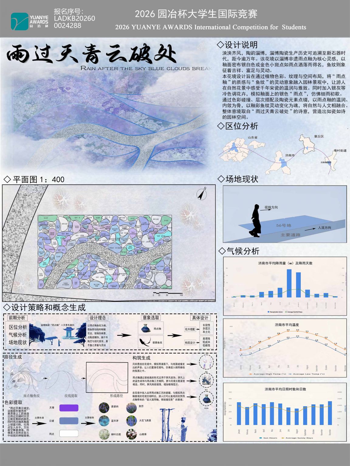 泱泱齐风,陶韵淄博,淄博陶瓷生产历史可追溯至新石器时代,距今逾万年。该花境以淄博非遗雨点釉为核心灵感,以釉面密布银白色或金色小斑点如雨点洒落而得名,鱼纹则象征着吉样、富足与灵动。本花境设计旨在通过植物 ...
