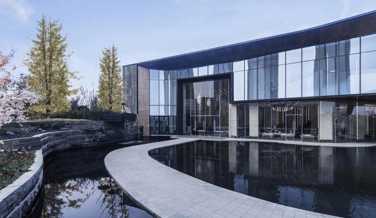 设计师对于场地景观空间的处理主要以“大水面倒映建筑,突出建筑,呼应‘水印长安、飞檐拾影‘的主题氛围,并融入山水景观意境”的方向进行设计思考,对方案在空间的开合、景观的氛围意境、细节的效果体现等多方面的多轮推敲与思考,经过不断调整与演变,最终效果得以呈现。
