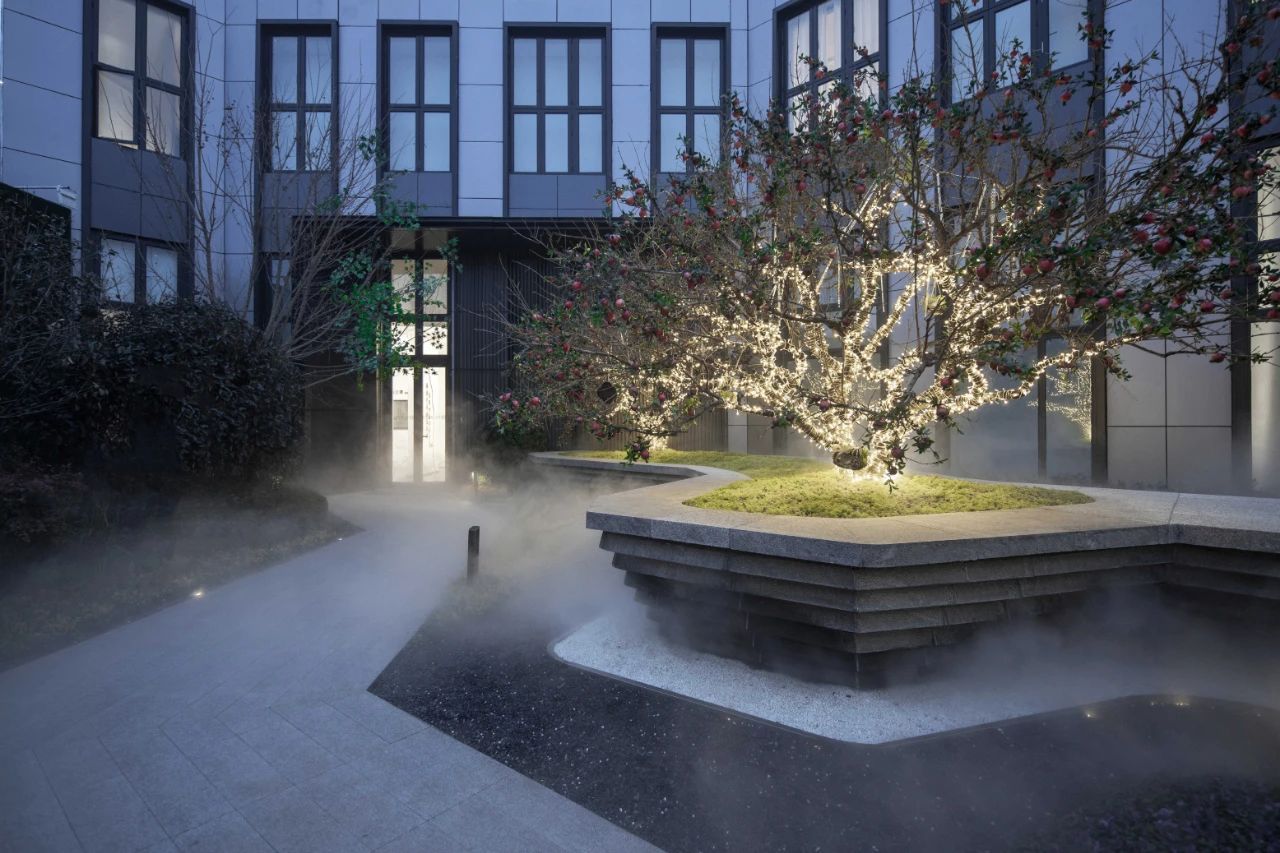归园——步入后场,层层叠级的种植树池宛若停泊靠岸的大舟,江烟弥漫,灯火阑珊,水岸边林径蜿蜒,延伸进层林之中,将人指引进层林深处的林隐人家;这里有清风明月、林深见鹿、清泉脆响和雾影人家,生活的美好意趣在此终得归宿...... |