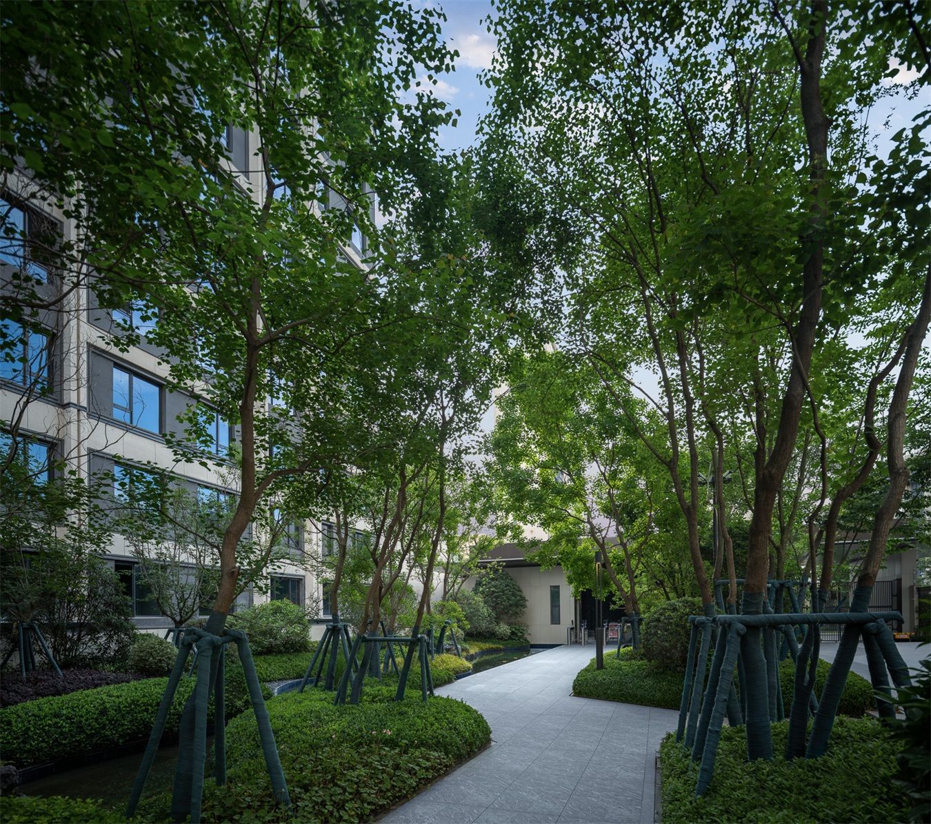树倚花园 花草芳菲,一步一景,绽放于家门前,构成一幅桃源意境图。利用景观设计打造入户单元专属宅间花园,为住户提供一个户外聚会,邻里交谈,休憩放松娱乐和锻炼的场所,增进人与人之间的情感交流。优美树形搭配简洁明了的石材铺装,精选乔木、灌木、花草相结合种植,构成丰富的层次感,四季有景,诗意盎然,静谧归家。