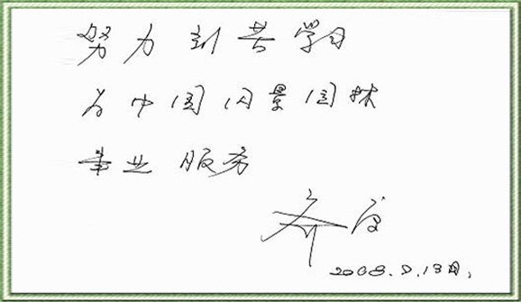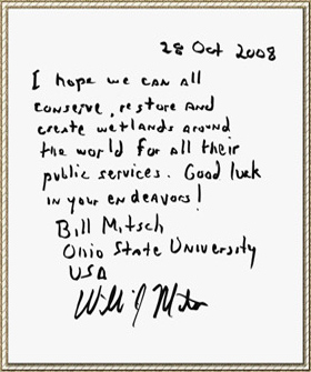 美国俄亥俄州立大学自然资源和环境保护学教授William J. Mitsch题词